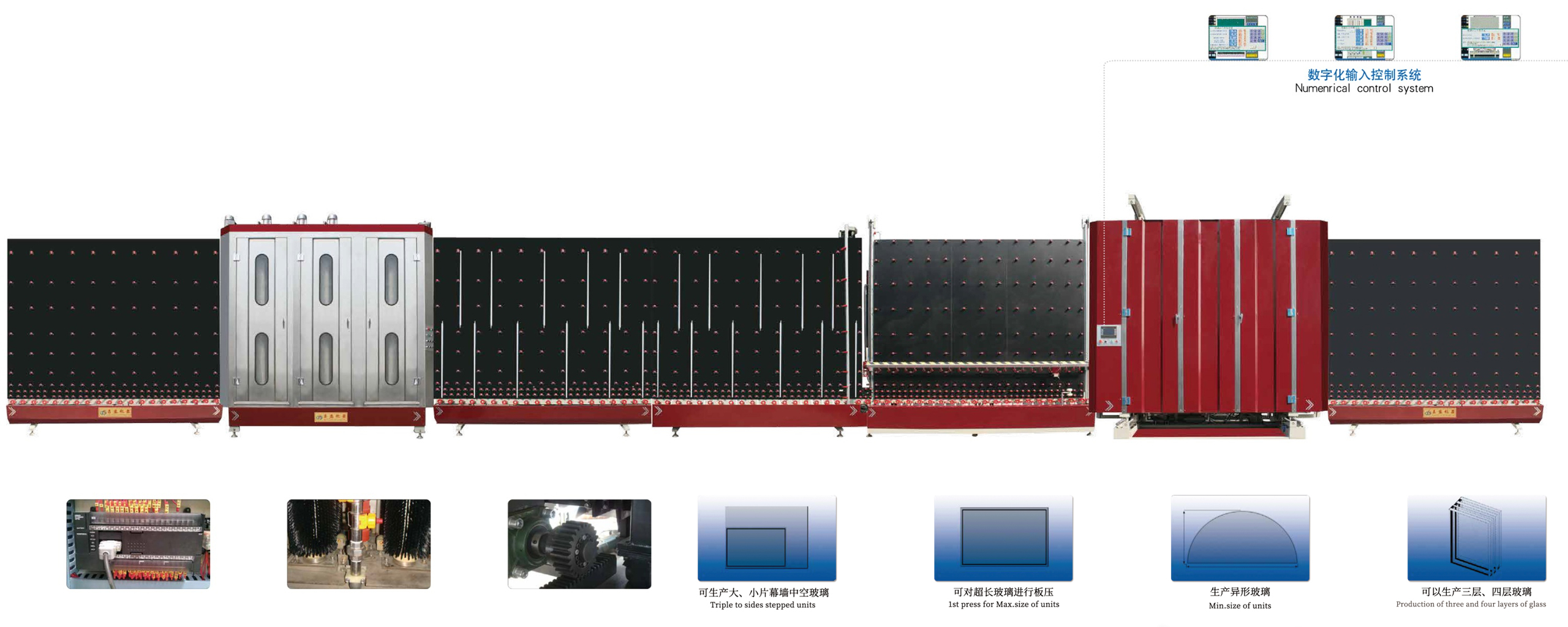 自动数控半岛(中国)(可生产LOW-E中空玻璃) 清洗机采用3对毛刷设计及对LOW-E玻璃专用毛刷避免膜损伤。